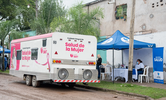El Tráiler de Cuidado Integral de Salud de la Mujer de la Municipalidad de San Miguel de Tucumán se instaló este lunes en el Barrio San Ramón Nonato, en la esquina de Chacabuco y Teodoro Combes, para brindar sus servicios médicos y sanitarios gratuitos a las vecinas durante tres días consecutivos.